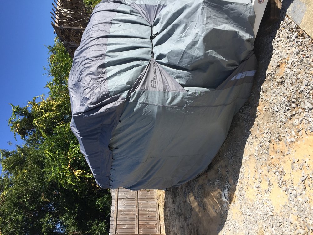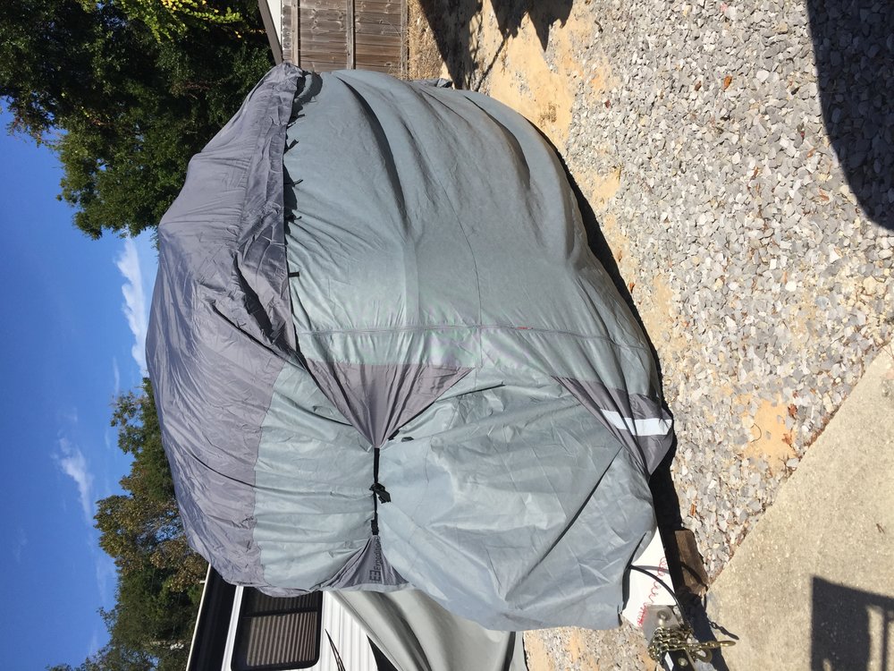 I use one of the inexpensive Expedition covers occasionally, depends on where I am and how long it is going to sit. I use a pool "noodle" to slide over the sharp edges of the bumper, steps and solar panels to keep it from cutting through. As Trumpet guy says, if it's just sun you are concerned with, a good coat of wax will do just fine. I am based in Maine during the summer, and I like to keep pine sap off of it though, so will slide the cover on to protect from that. I will also cover if it will sit for extended periods while in FL, but mostly to keep the curious away more that anything else since it is kept on a storage lot. If I get three seasons out of the cover I will be happy.