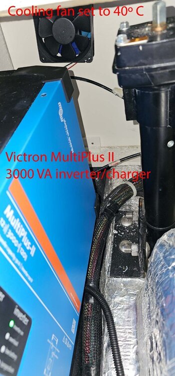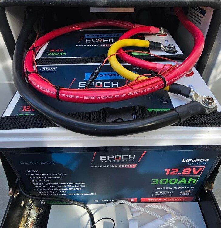 Overview We just got done upgrading our 2018 LEII (hull #344) from AGM to Lithium. The death knell had sounded for our original AGM batteries. So, given the cost to replace the AGMs, their weight, and the limited usable capacity inherent in AGMs, we decided to upgrade to lithium. We settled on 2, Epoch 300 Ah LiPO4 batteries with internal heating (a total of 600 Ah). The decision to purchase the Epochs was made easier by a 15% sale so we bit the bullet and purchased the batteries , a new Victron Multiplus 2 3000 VA inverter and charger, and a Victron Orion DC to DC charger which will allow us to charge directly from the tow vehicle. Here are more specific details about each step. We relied to a great extent on our tech. Victron Orion DC to DC charging We mounted the 50 amp Victron Orion under the aft seat in the dinette. The Orion was set to draw 30 amps from the alternator on the 2020 Ram 1500 Ecodiesel tow vehicle. The alternator puts out about 220 amps so we are confident this is well within safe operating parameters with all existing loads. We used 4 awg coupled to a marine connector from the TV to the trailer which looks to be quite robust. Of course, we disconnected the power from the 7-pin connector. Victron Multiplus 2, 3000 VA inverter and charger We mounted the inverter vertically under the streetside bunk. We also added a dc fan onto the bulkhead between the bunk and the basement to address heat issues and set it to operate above 40C. The inverter has a main disconnect as well as an inline breaker as per code. System Monitoring A Victron Multicontrol replaced the Progressive Technologies inverter switch from the OEM install and was installed in the same location. This is our primary control panel which provides operational status of the system, and allows us to control the input current. Specific battery State of Charge and other more granular data are available in the Victron shunt app, the Epoch app, and the Victron Multiplus app (as well as the original Xantrex Solar Controller which we did not change). Performance of the system We tested the system today by running our OEM Dometic Penguin A/C off the battery bank. We set the thermostat to 75 F. After 5 hours, we were at 55% SOC. Full disclosure, we only finished the install today and the tests were conducted in our winter conditions here in the Keys at 78 F ambient. The trailer did get warm during the day, but I do think we are likely to get 5 hours or so of A/C in the hotter summer months. Maybe even more. We haven't tested the DC to DC other than at idle. As mentioned, we set the charger to 30 amps so we are likely to get a full charge after a full day driving but that is just an estimate. We have enough leeway to turn up the output from the alternator if needed. Special KUDOS A great deal of thanks goes to our tech who helped install all this - Anthony from Outboard Rigging here in Marathon is the Man! Pictures of the install follows: