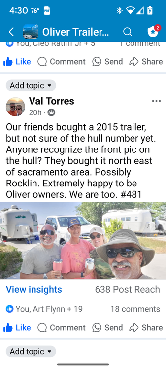Frank C Posted March 9, 2022 Posted March 9, 2022 1 hour ago, Boudicca908 said: So.... Reading from above, is the VIN number actually different than the Hull number? I know my Hull number, but don't know my VIN (if different) and will need it for insurance and storage facility rental agreement, etc... ** I couldn't find this information in search (VIN number location, where is VIN number, is VIN number same as Hull number, etc) ** The VIN is printed on the two labels on the lower forward street side of the trailer. To the right of the reflector in the photo. It’ll also be on your sales paperwork from Oliver. Unfortunately Oliver doesn’t do a more permanent stamped number on the aluminum frame somewhere, at least not on ours anywhere. 1 2