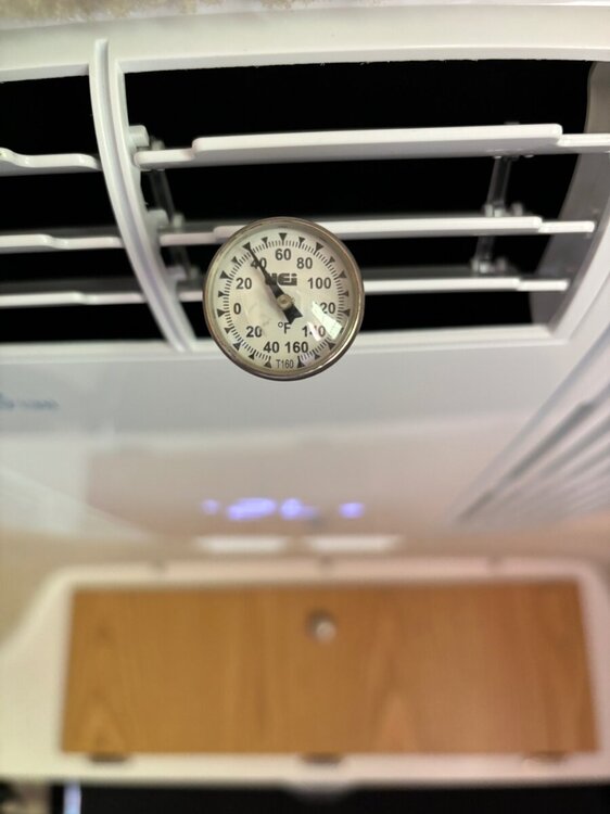 GSMBear Posted October 30, 2023 Posted October 30, 2023 8 hours ago, Geronimo John said: Try putting the thermistor into a small plastic pill container with a hole in the lid for the cable. Leave the lid hole sort of open, maybe even put a hole in the pill container bottom. Great minds think alike? 🤔 What I did ended up being similar to this. The final location where I wanted the thermistor provided some good shielding from airflow. It's also at a more reasonable vertical level. My initial testing had the thermistor pretty close to the ceiling because that's as far as the original wire would reach and still get it around the corner of the cabinet. I took a big gasp and snipped the end of the thermistor wire about 8 inches from the tip. Then I added several feet of supplemental wire to extend the length so that it would reach where I wanted it to go. I tucked it behind the cover of the ugly mechanical thermostat that now controls the gas furnace. At first I had it poking out the other side so I wouldn't see it but that appeared to provide too much shielding. I switched it to the side you see in the picture and it seems to have the perfect balance. The short cycling stopped. I didn't time it but I'd say the on cycle was about 10 minutes and felt very comparable to the original Dometic unit. The off cycle was a little longer. Two wifi-enabled temperature sensors provided temperatures of 68.5 at the front by the panoramic windows (in the airflow path) and 70 directly on top of the mechanical thermostat where the sensor is (shielded). I probably had this kind of temperature difference with the original AC but I never measured it. It was too warm to test the heat but I'll get that done later. (If our theories are correct, those fins still would have had a lot of moisture on them.) Pictures below show the path the thermistor wire took: 1) from a factory wire access hole to a nearby ceiling puck light, then 2) across to the top of the interior of the microwave cabinet, then 3) down the side of a closet and under a shelf and through an existing wire access hole for closet lighting to 4) the ridiculously large and off-center hole from the Dometic CCC2 to 5) the final location! In the first picture you can see the snipped drain tube from the Dometic in the top left corner. In my Airstream, this runs directly down the side of the wall and it exits in the street-side wheel well. Would have been nice to integrate this somehow with the Houghton. I'm not sure how this is different in an Oliver RV so I've not commented on your question about this. I'm not understanding how this might provide a path for the wire but I'm sure it's because of my lack of familiarity with your setup. 1